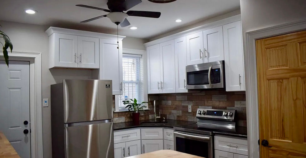 There is a decorated chimney which is the perfect focal point of your TV. The living/dining area have brand new engineered bamboo flooring. Followed by the kitchen which has porcelain tile. The kitchen also has beautiful granite counters and an additional multi use bar area with butcher block counters and new stainless steel Samsung appliances throughout. And don't miss the dual USB outlets.